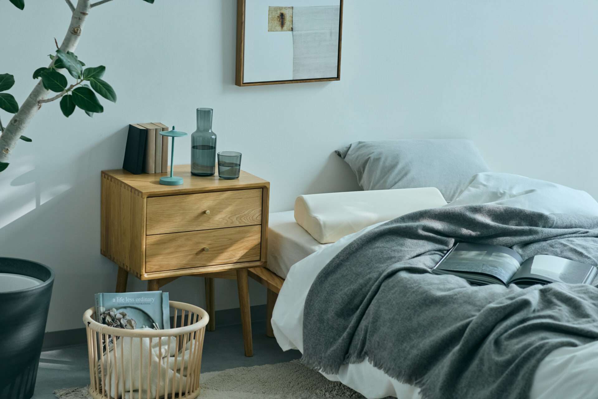 まず見直したいのは、寝具です。肌触りの良いシーツや、首をやさしく支える枕、身体に馴染むパジャマやリラックスウェア。自分の好みや身体に合ったアイテムたちは、快眠のスイッチにもなってくれます。