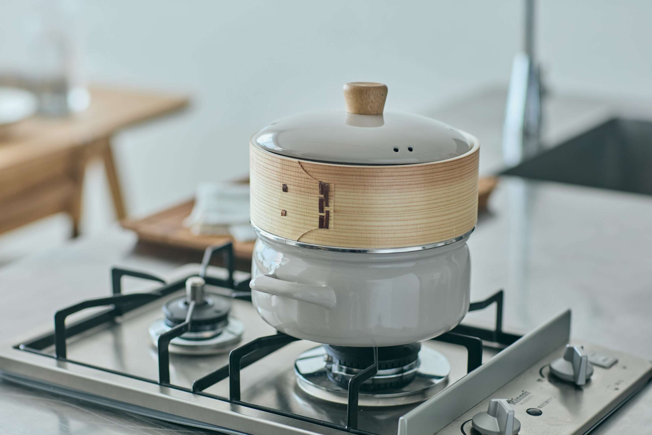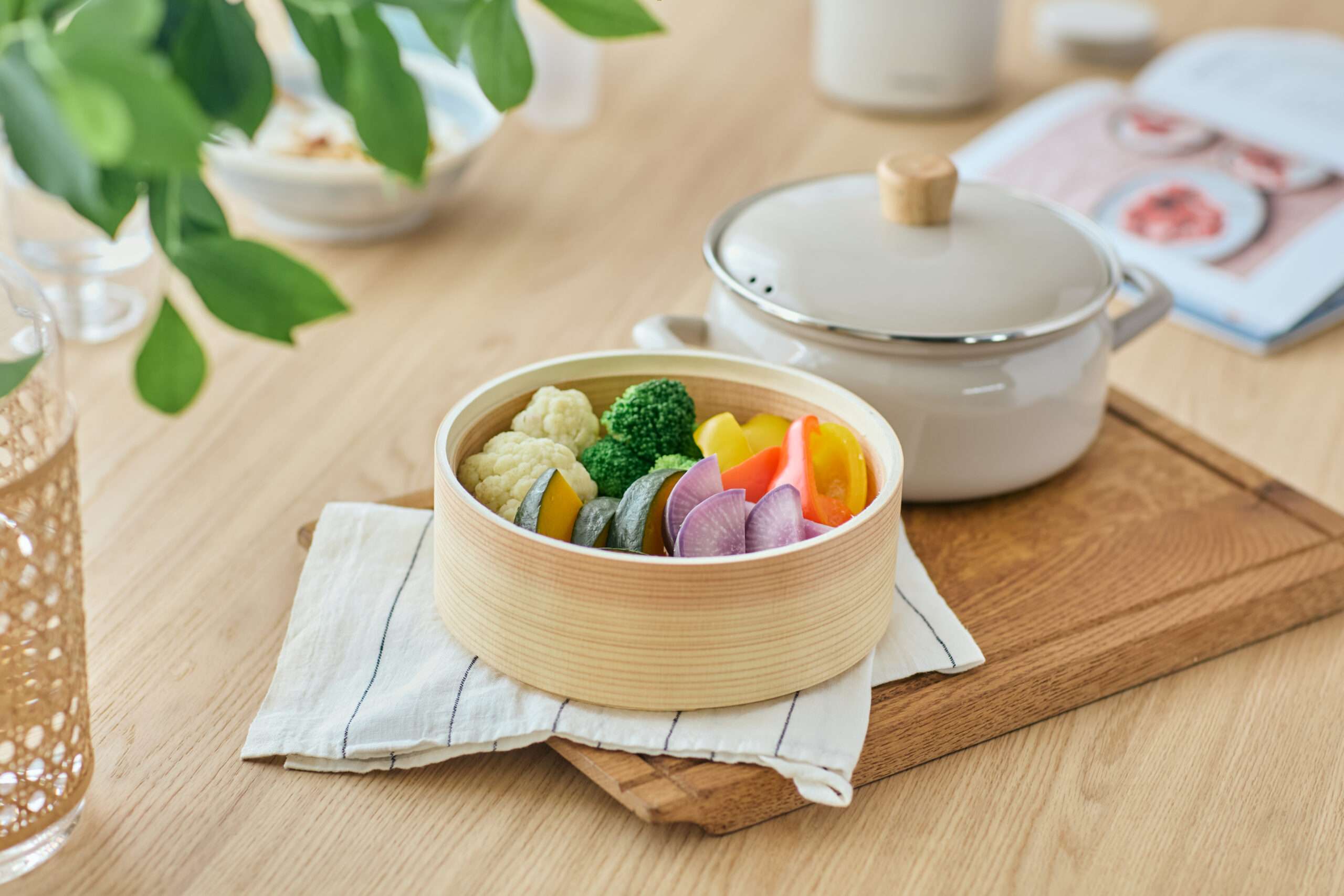 そのほか、腸活には<富士ホーロー>せいろ付きホーロー鍋もおすすめです。ホーロー鍋とせいろがセットになっていて、野菜をのせるだけで手軽に食材の味わいが引き立つ蒸し料理ができあがります。お手入れ簡単なホーローは汚れにくく、毎日の食生活にも取り入れやすいですね。
