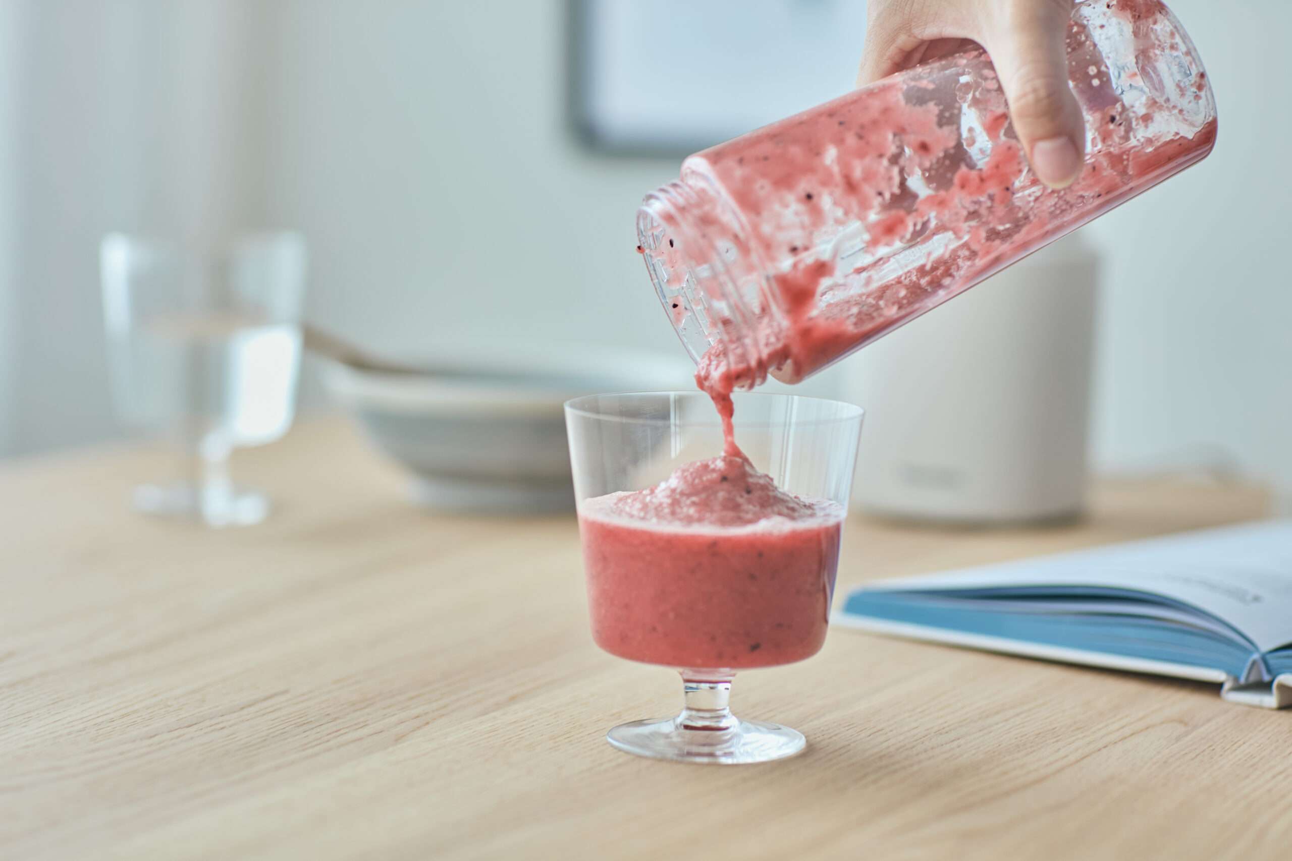 スムージーなら、3ステップでなめらかに仕上がる<ビタントニオ>のマイボトルブレンダーで。キャップを変えると持ち運びタンブラーとしても使えるので、時間のない朝は、学校や職場での朝ごはんとしても良さそうです。パワフルで氷を使った冷たいスムージーも楽しめます。