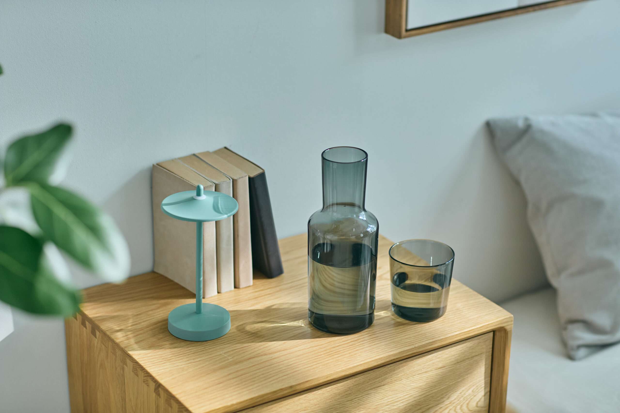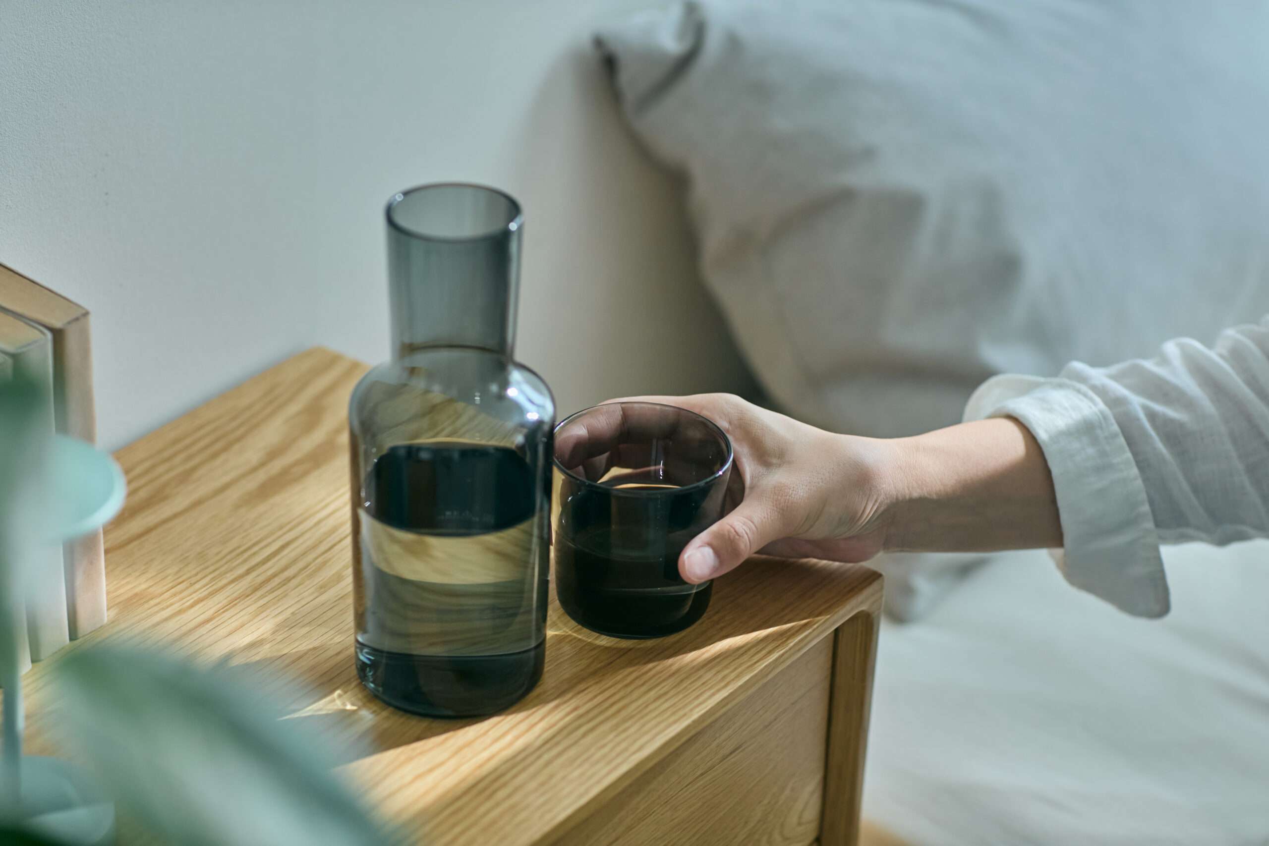 ベッドサイドに水を用意しておくことも、心地よい眠りを支えるための小さな習慣です。<ハリオ>ナイトカラフェは夜の静けさに寄り添う、美しいシルエットのナイトカラフェ。ベッドサイドに一杯の水があるだけで、乾きがちな空気や身体にもやさしく、心にもふとした安心感を与えてくれます。目覚めの一杯にもぴったりです。