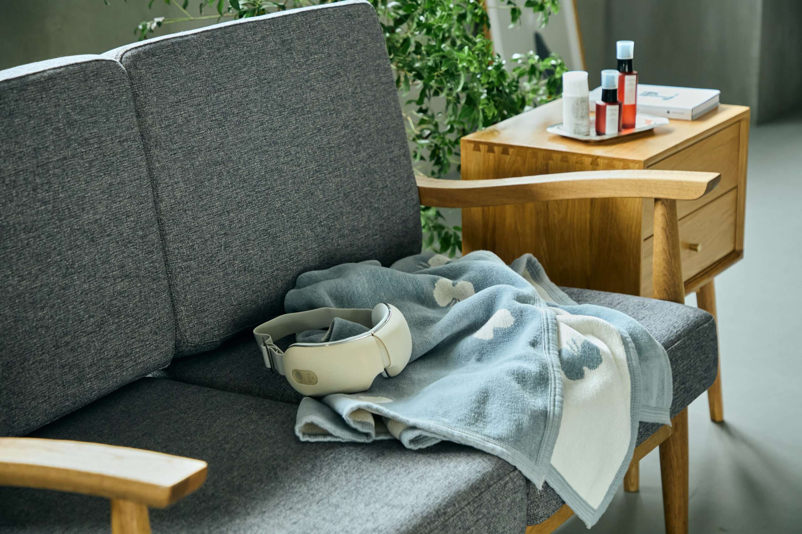 また、<ニューピース>モーションアイのように、ソファやベッドで過ごす時間をアウターケアに使ってみるのはいかがですか。目元をやさしく包み込み、音と動きで導く“ととのう”時間…呼吸と同期するようなリズムに身をまかせて、ただ「今ここ」に意識をおく。本やスマートフォンを置いて1日10分。思考のスイッチをオフにする新習慣で、自分を回復させてあげましょう。