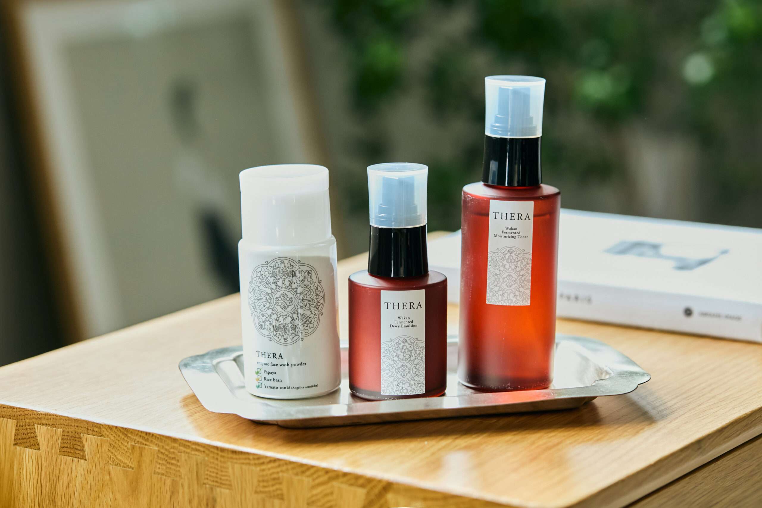 <THERA>和漢発酵スキンケア ボリュームセットは、“和”のやさしさを肌へ届ける贈り物コスメ。植物のちからと和漢の知恵を取り入れた、発酵由来のスキンケアシリーズです。とろみのある化粧水や美容液を肌になじませるたびに、五感まで静かにほぐれていきます。忙しない日々のなかでも、自分を労る大切さを思い出させてくれるアイテムです。
