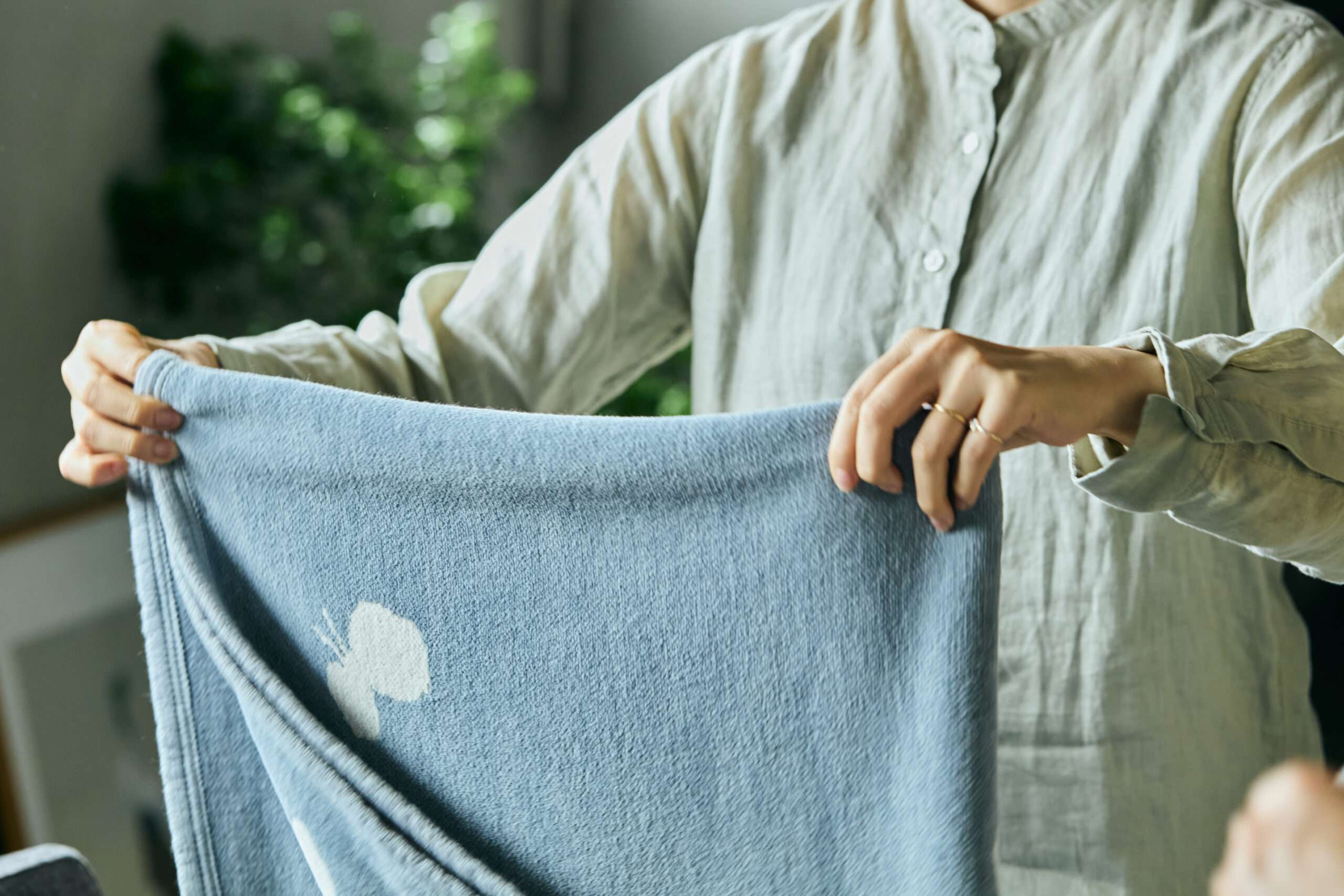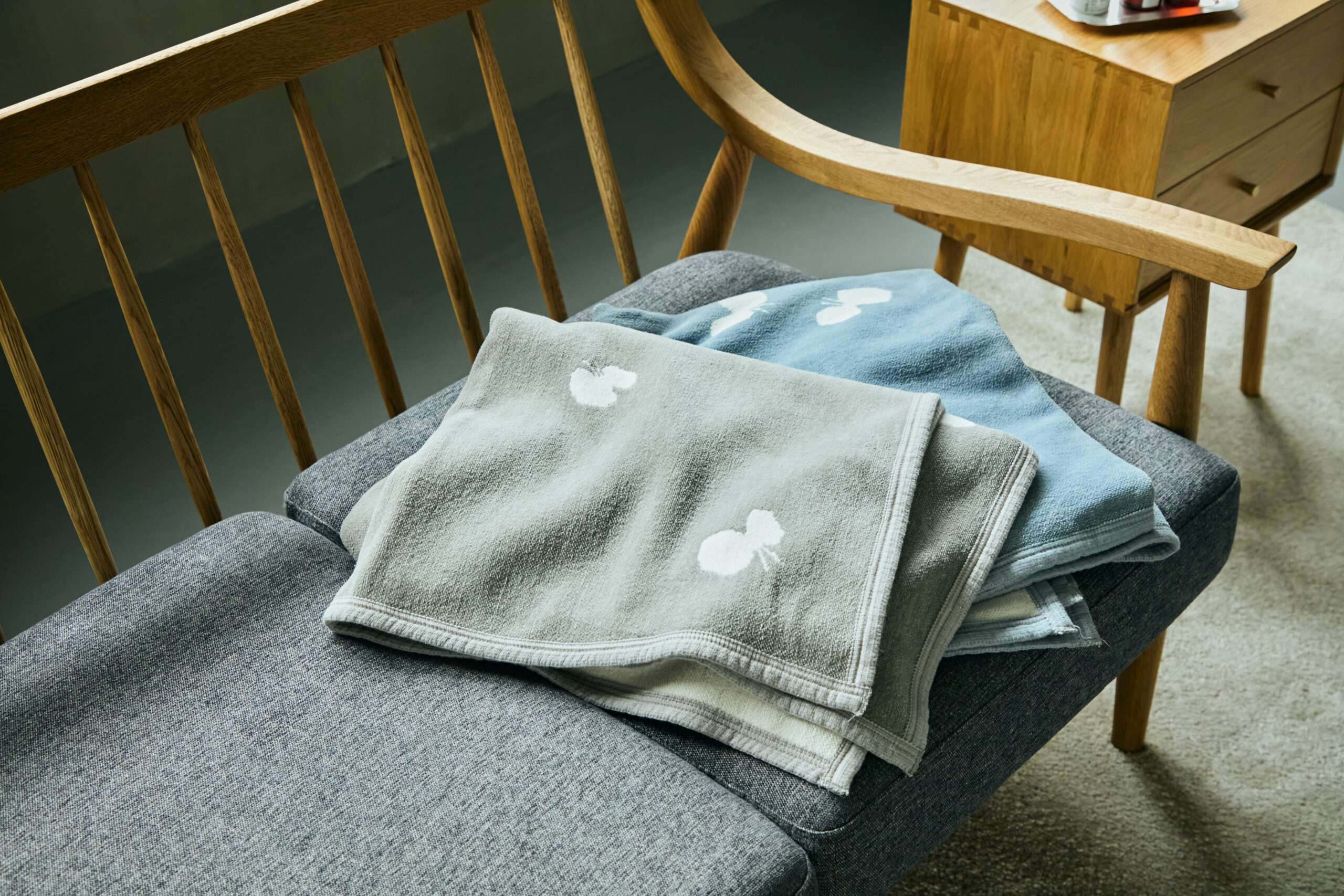 <クリッパン>ハーフコットンブランケットは、羽のようなやさしさをくれる一枚。北欧テキスタイルのぬくもりと、日本の暮らしの静けさを感じさせるデザインが空間に寄り添います。肌触りがやわらかく、ソファに掛けてあるだけでお部屋の雰囲気がやわらかに変化。少し肌寒い日のひざ掛けや、エアコンとの温度調節にもぴったりです。