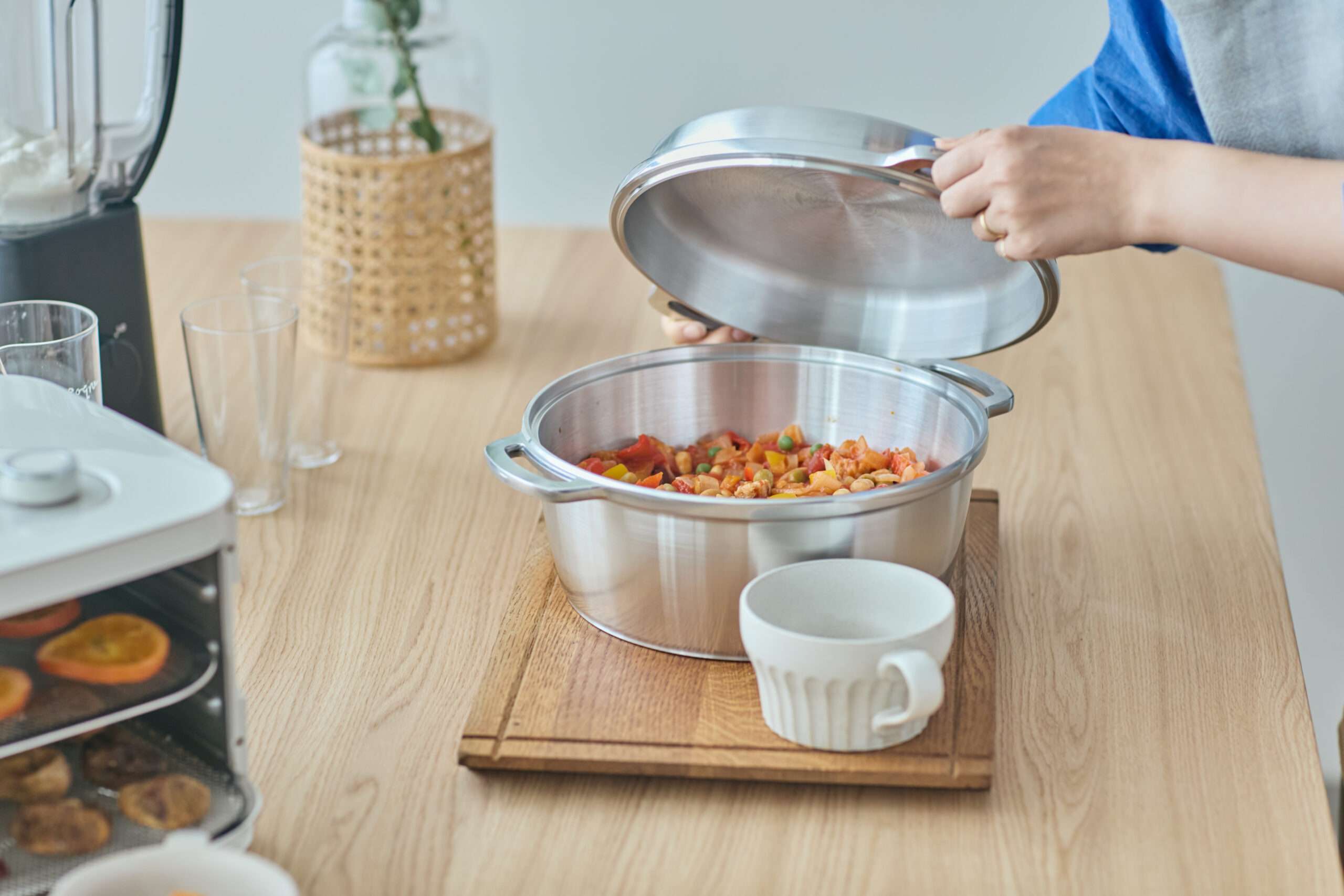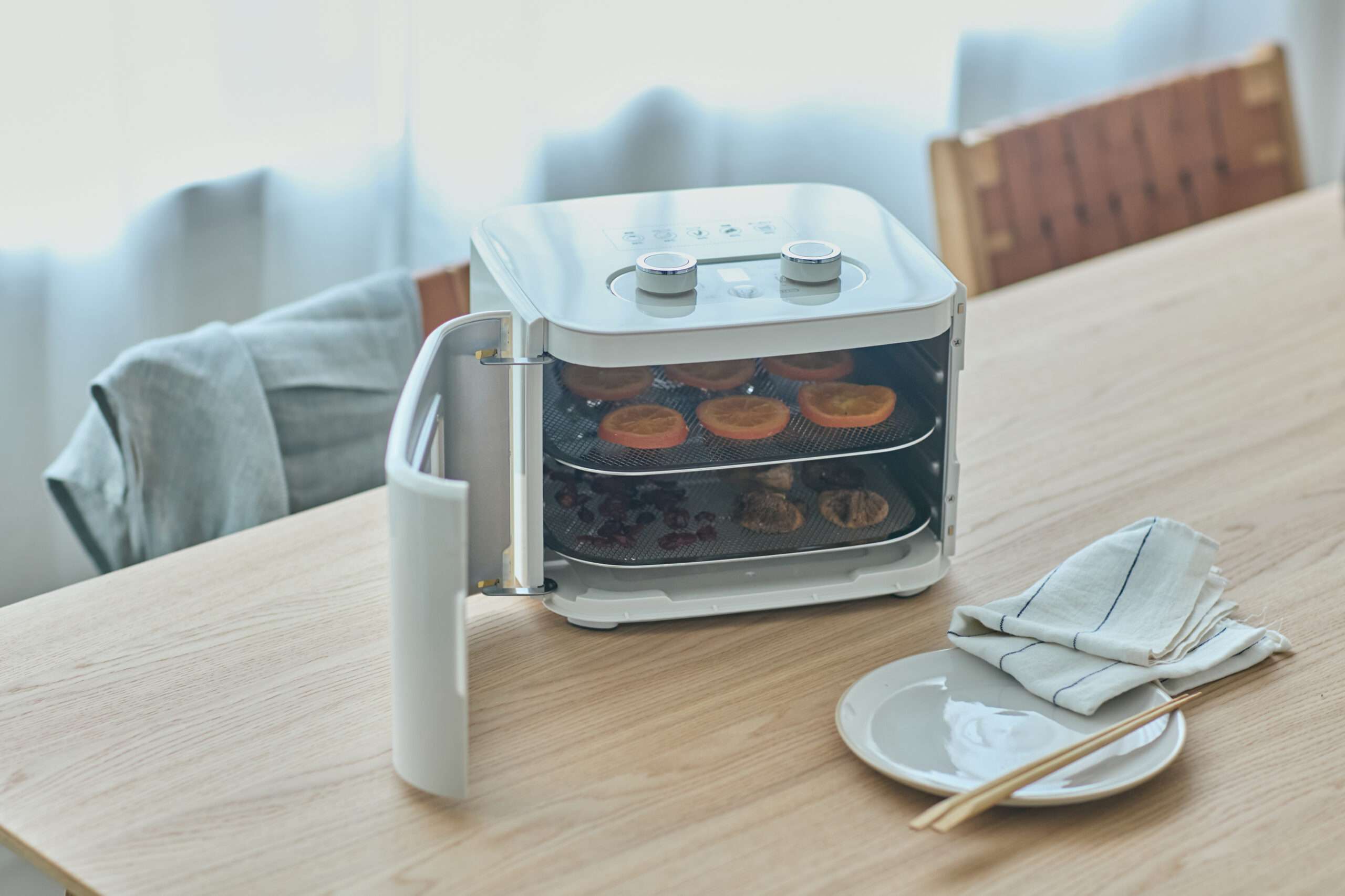 そのほか、腸活にはドライフードもおすすめです。ドライフードは食材に含まれる水分が抜け、栄養はそのままに、素材本来の旨味や甘味がぎゅっと凝縮されます。自家製ドライフードが手軽につくれる<アルコレ>ドライフードメーカーなら、最大4枚の乾燥網をセットして、少し余りがちな果物や野菜などを一度にたくさんドライ調理可能。天日干しとは違い、時間・害虫・天候不良を気にしなくて良いところもポイントです。