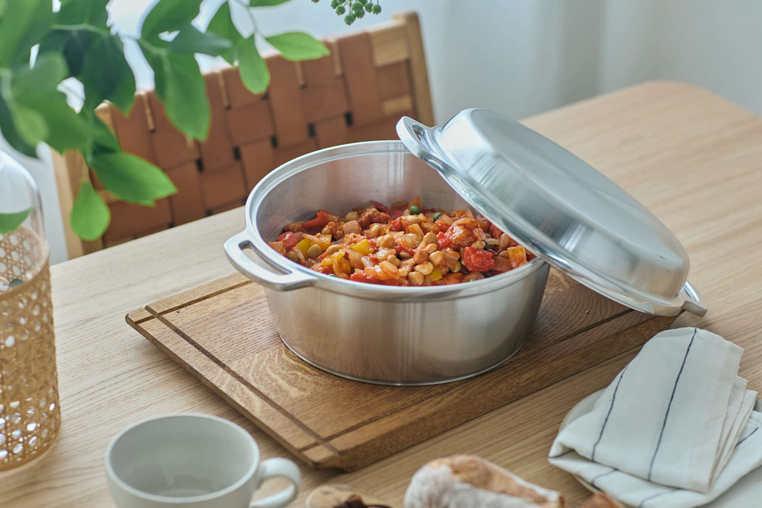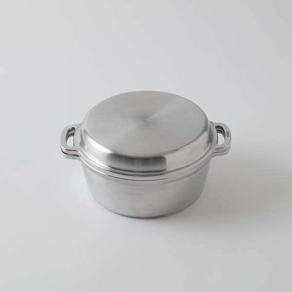 <キング>無水鍋は、1953年に広島で開発された「無水鍋」の復刻版モデル。うまみを引き出す無水調理が得意な鍋で、旬の食材で調理すると豊かな風味や濃厚な味わいに驚くほど。素材に含まれているビタミンやミネラルなどの流出を防いでくれ、少ない油と調味料で美味しく仕上がります。アルミ素材で軽いことも特徴です。