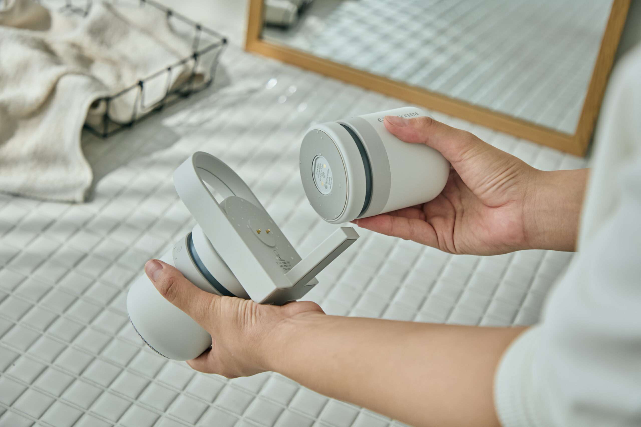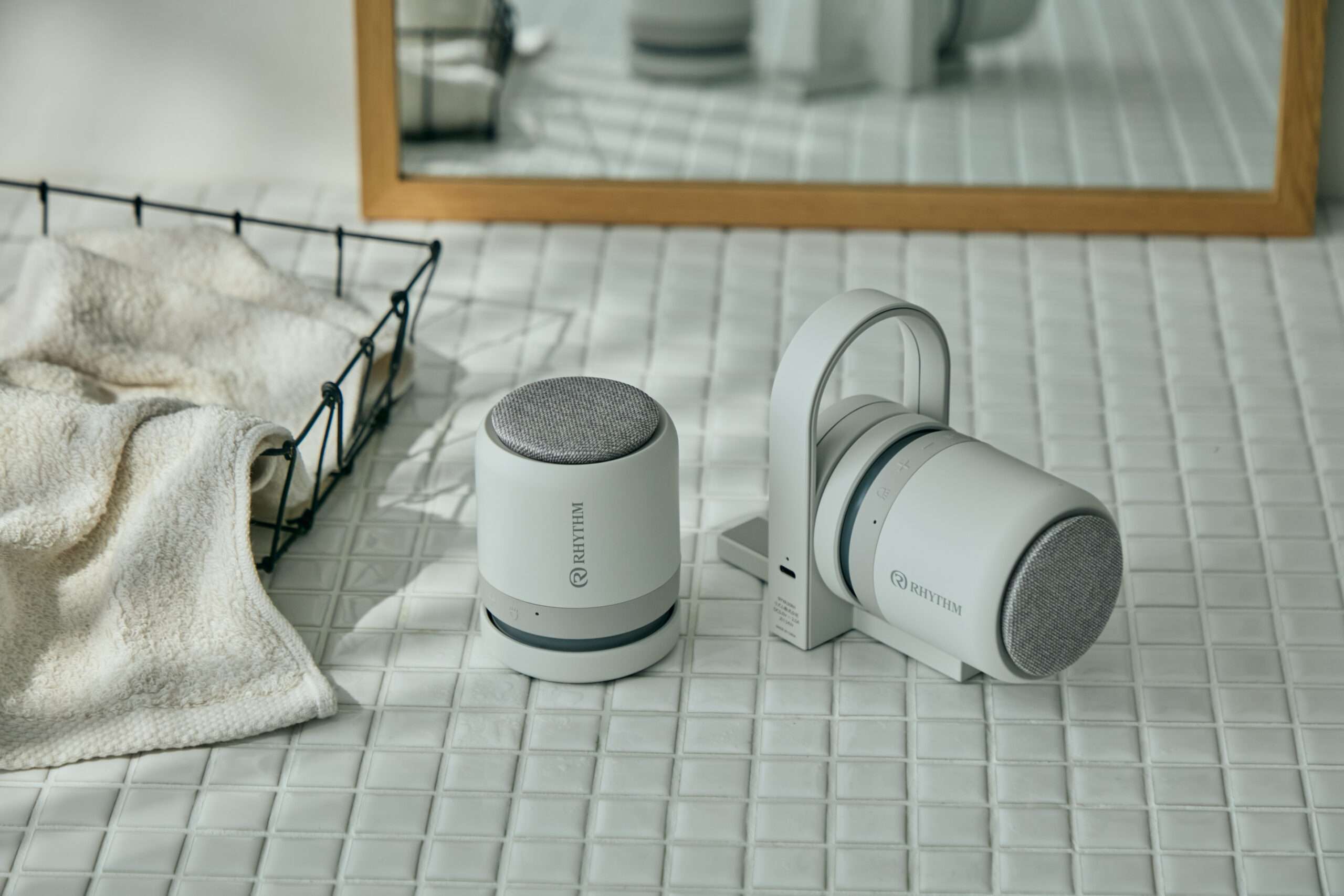 さらに、ワイヤレス防水シアタースピーカー<リズム>マグスピーカーデュオがあれば、バスタイムはさらに充実。2台一式のスピーカーでひとつずつ取り外せ、自分の左右においたり、マグネットで浴室の壁に貼り付けたりすることができます。タブレットと繋いで動画を流せば、ユニットバスはシアター空間に。電源ONで穏やかに光が灯り、おやすみ前の間接照明としても活躍してくれます。
