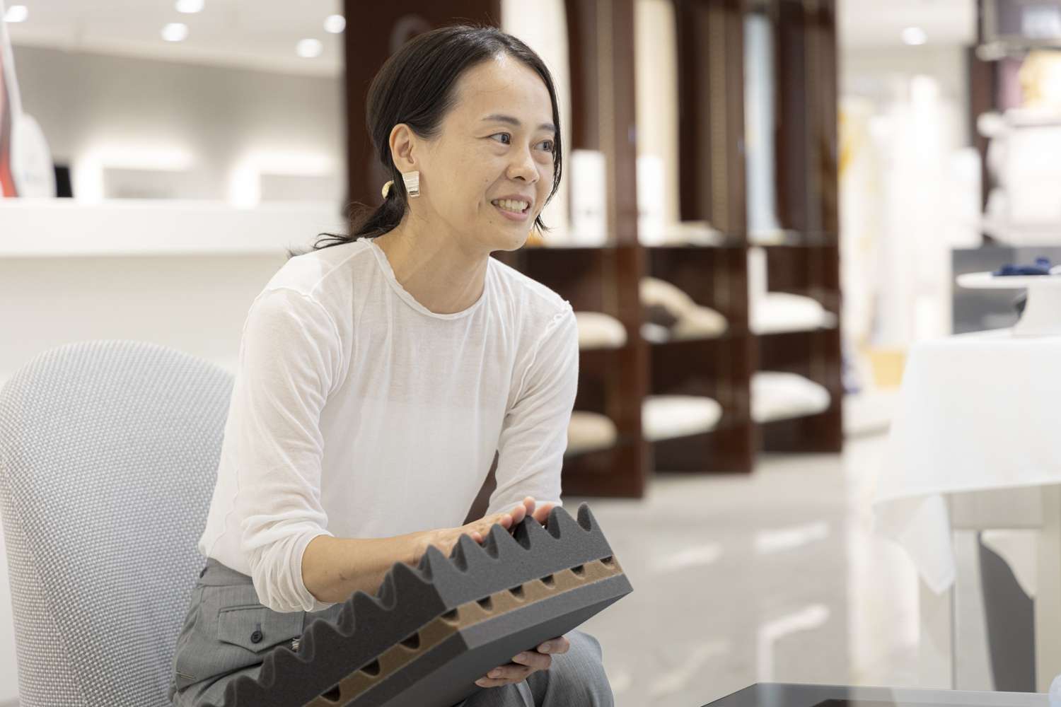 耐久性を検証するために、社員の方が長年愛用している〈ムアツ〉を使用することもあるのだとか。